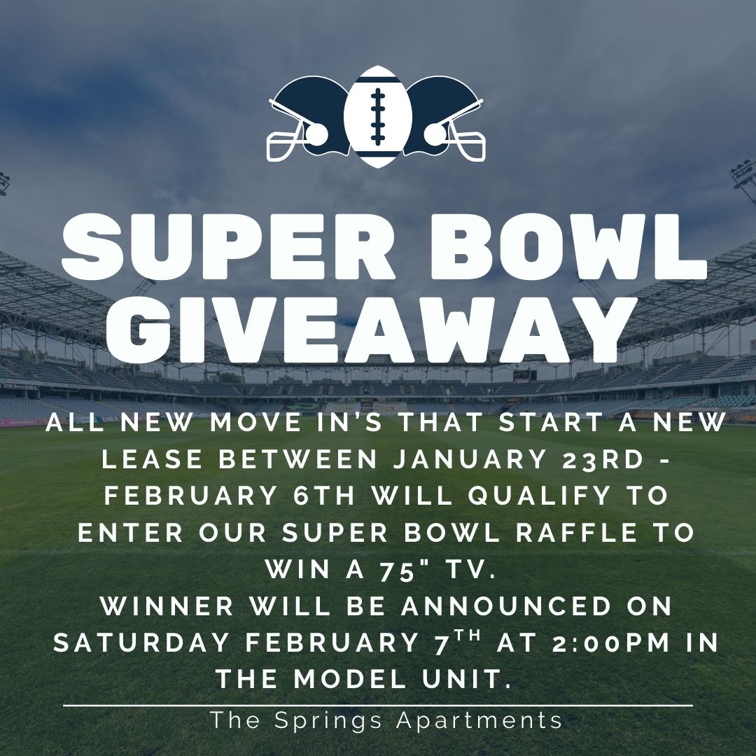 Who qualifies? All NEW Move-In's on a NEW Lease. What will be raffled? A 75" TV! That's right, watch the Super Bowl game in your new home in style! π